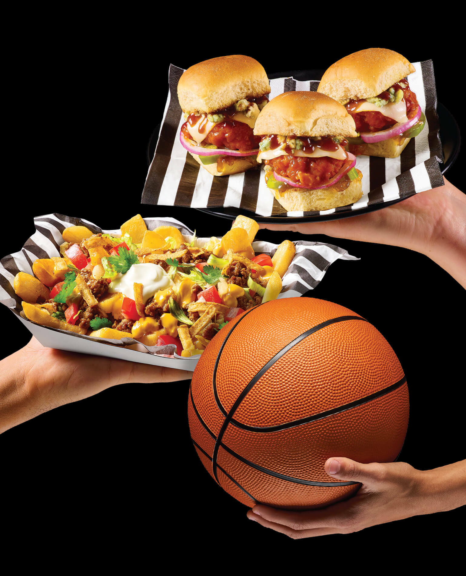 Team pride and amazing food—just what a crowd needs.